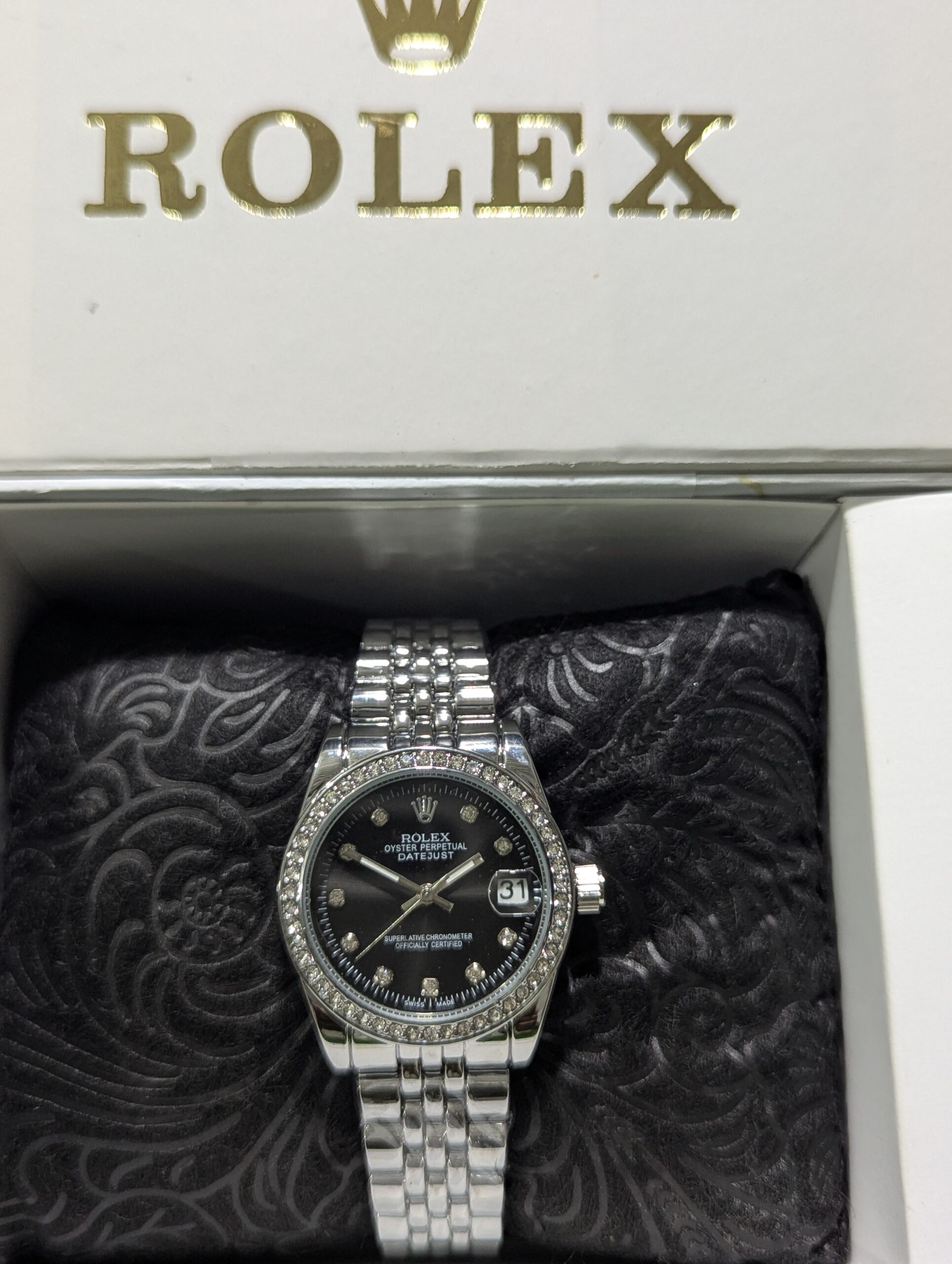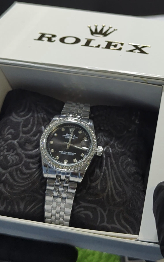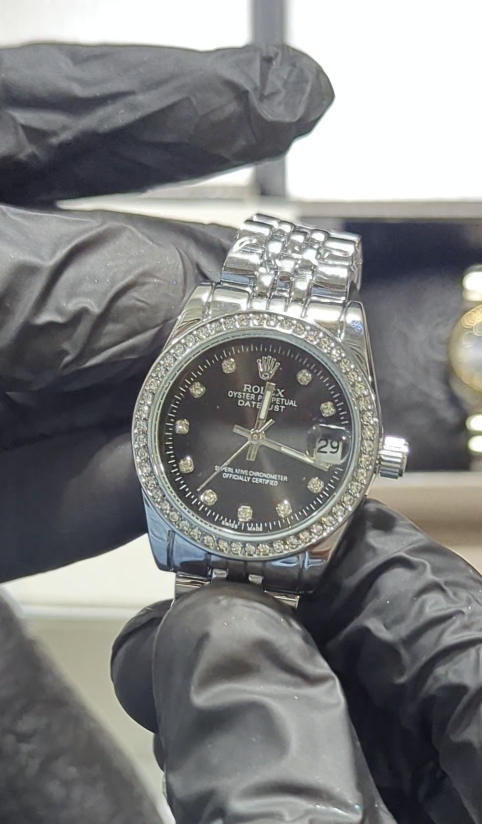 Add a touch of elegance to your wrist with this stunning Rolex Oyster Perpetual Datejust for Women, designed to reflect timeless beauty and sophistication. Featuring a sleek black dial with diamond hour markers, this watch offers a perfect balance of luxury and minimalism.