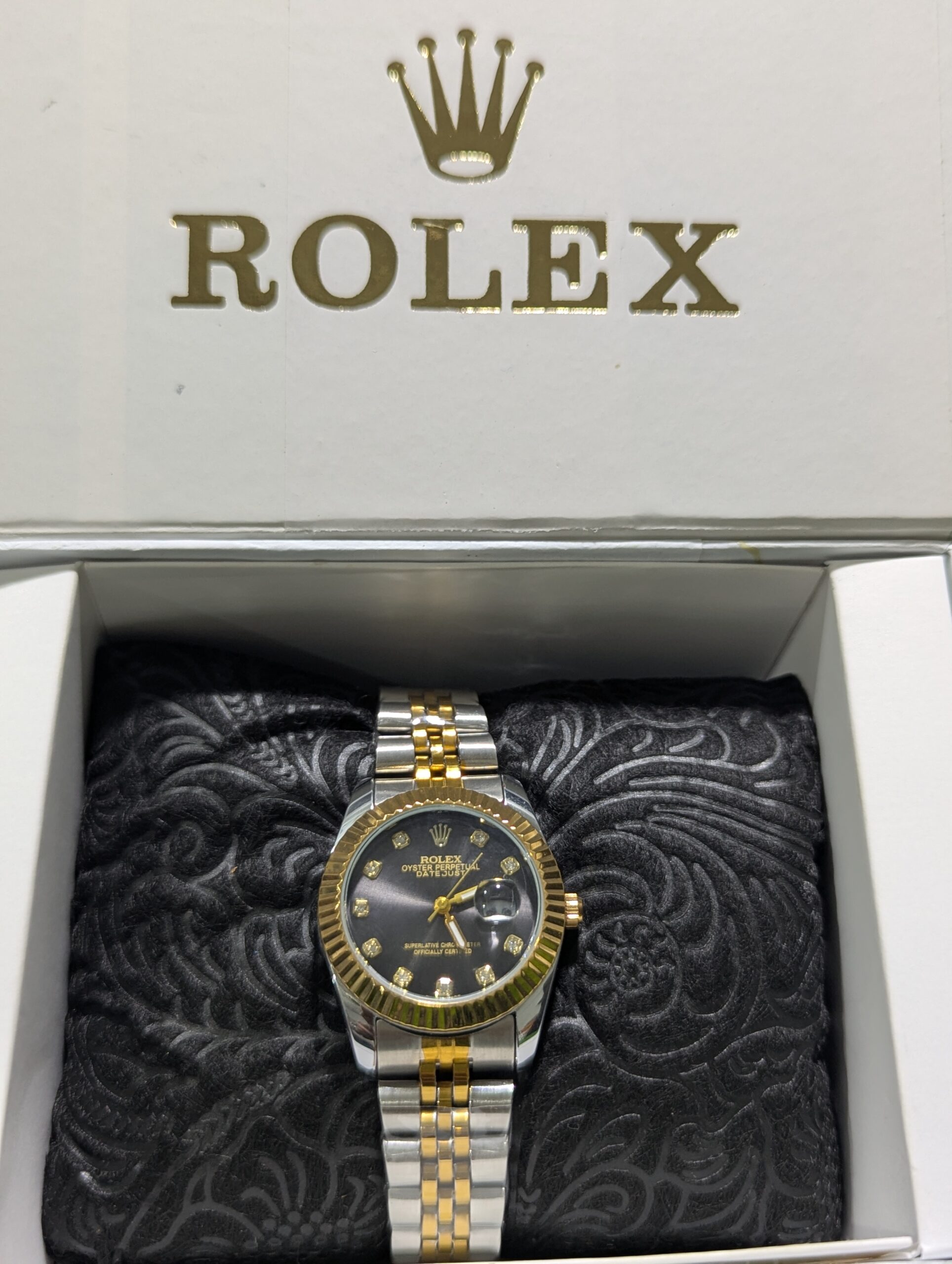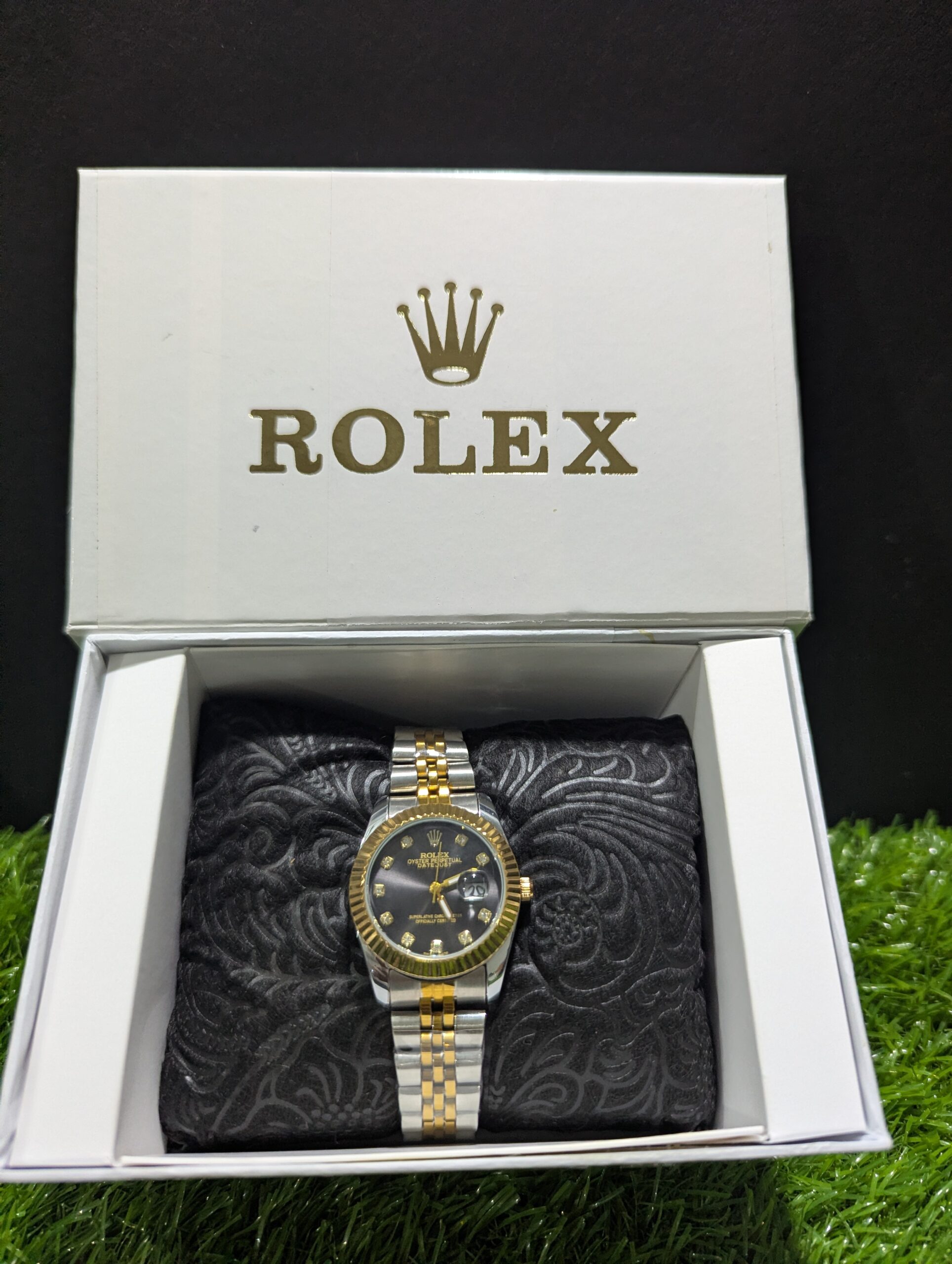 The standout feature is its fluted gold bezel, which adds a signature Rolex touch of luxury and brilliance. The two-tone bracelet (gold & stainless steel) not only elevates its style but also ensures durability and long-lasting shine.
